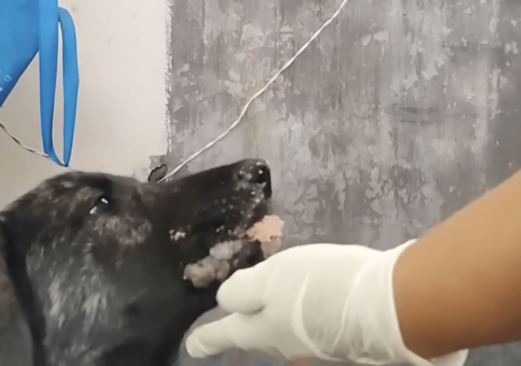 For years, he had been living with severe oral papillomas. The growths covered much of his mouth, making eating slow and painful. Every meal required patience. Every day demanded endurance. He survived by finding soft scraps when he could and drinking rainwater when nothing else was available.