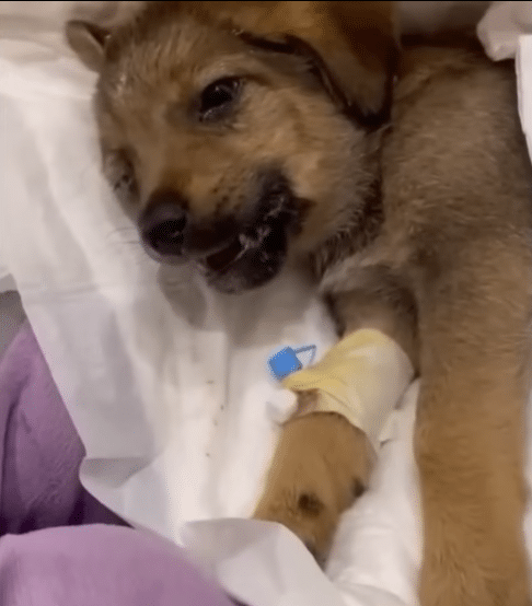 His skull had been fractured during the attack, and the trauma had caused a severe brain injury. His condition was critical. The doctors explained that the next few hours would determine whether the little puppy could survive.