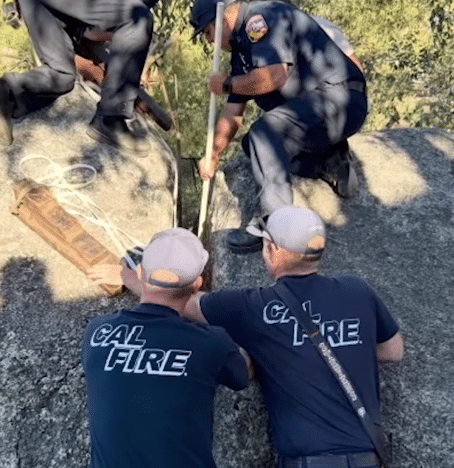 Rescuing animals from tight spaces is never simple, especially when heavy natural rock formations are involved. The firefighters had to approach the situation carefully to avoid causing the rocks to shift in a dangerous way.