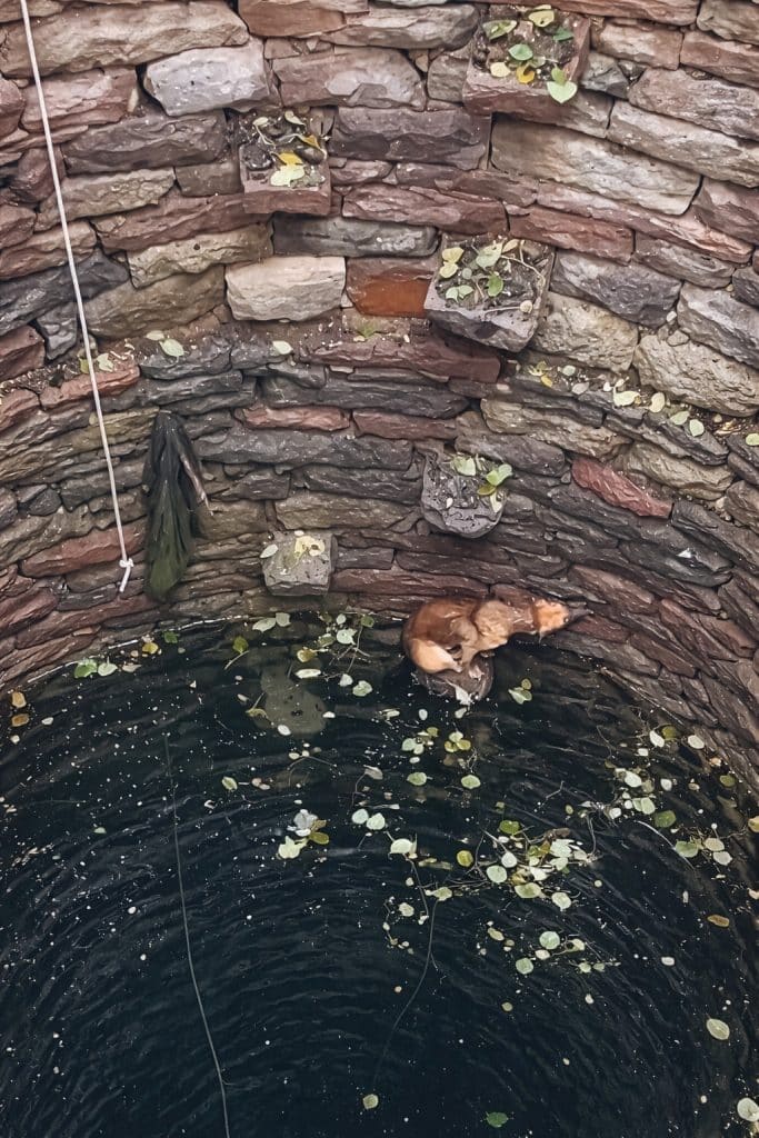 In an old abandoned well, built long ago with rough bricks and stone, a frightened dog found himself trapped in a life-threatening situation.