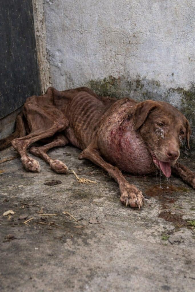 The wound on Vida’s neck had become so deep that it affected his trachea. When he breathed, veterinarians could hear air escaping through the damaged tissue.