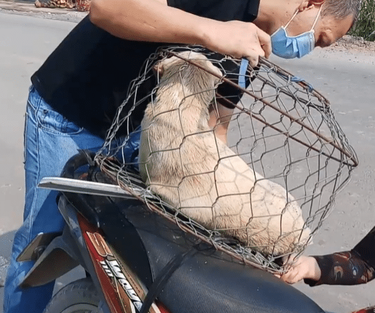 The moment rescuers looked closer, their hearts sank. The dog’s mouth had been tightly bound, and all four of his legs were restrained with straps. He couldn’t move. He couldn’t cry out. He could only lie there silently as the motorbike carried him forward.