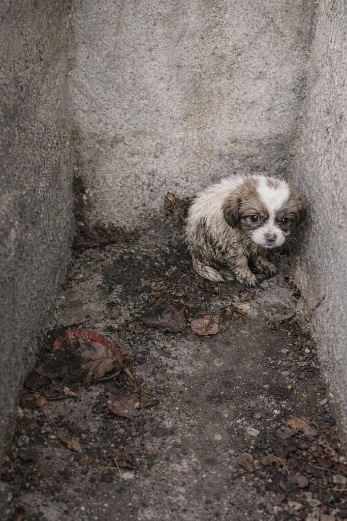 A Fragile Puppy Hidden in a Dirty Drain