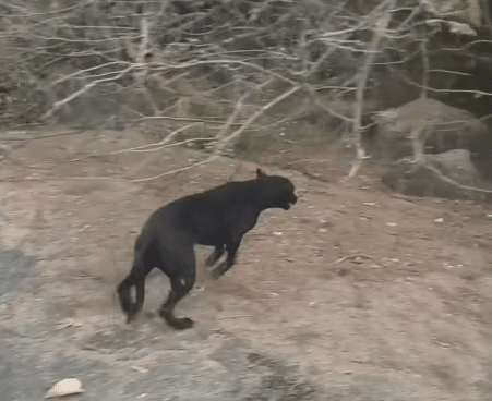 Within seconds, the dog was running across the open ground toward a nearby stretch of sparse forest.