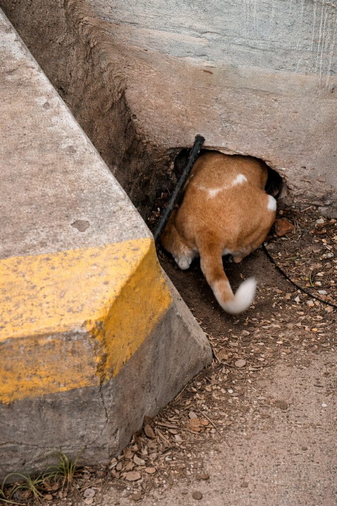 The drain pipe was buried beneath thick concrete, leaving no direct way to reach the trapped puppies. The only solution was to open the ground itself.