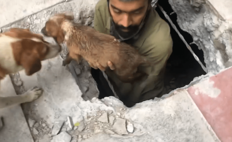 The final rescue took patience, but eventually the last puppy was carefully lifted from the darkness.