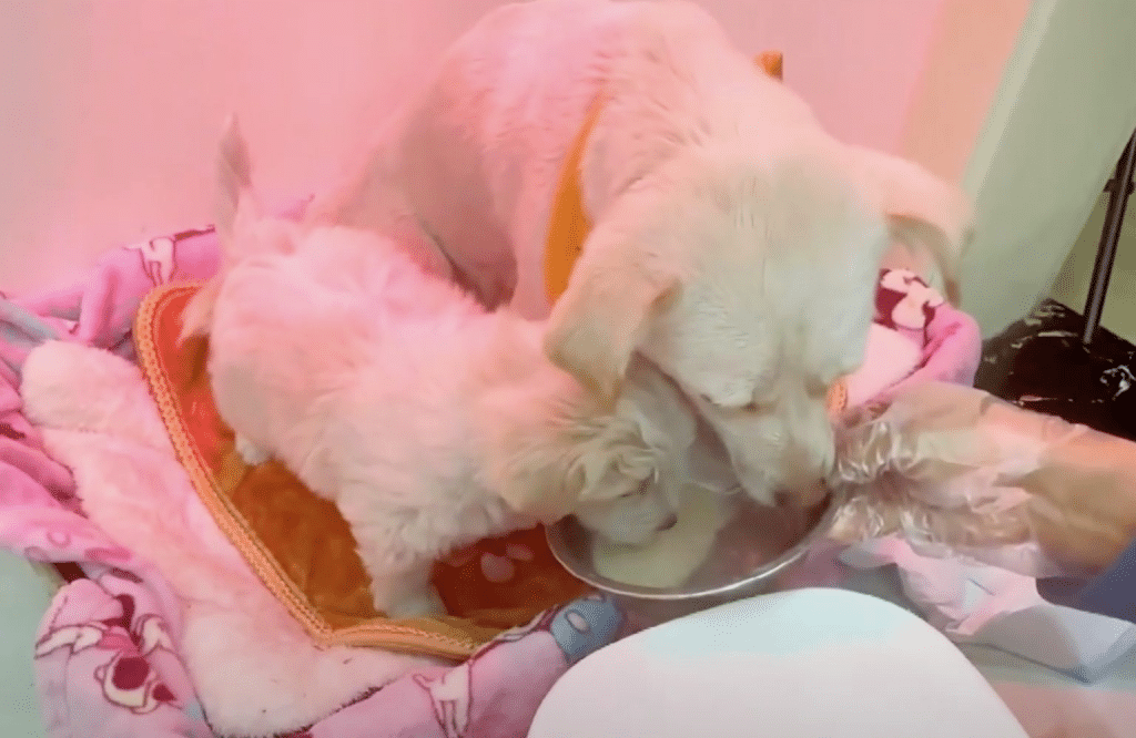 Food and water were placed nearby. Oliver hesitated, then accepted them carefully, as if unsure whether this kindness would last.