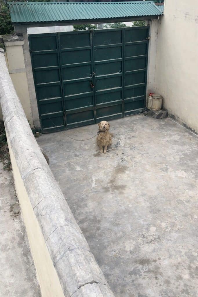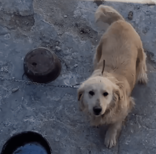 There, tied to a short chain, was a Golden Retriever.