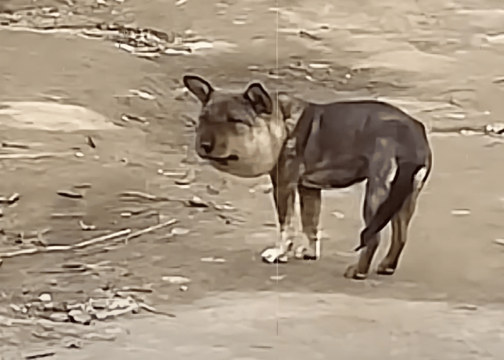 His body was thin to the point of fragility, his coat dull and knotted from weeks—perhaps longer—without care. Hunger had stripped away everything unnecessary, leaving only what was required to endure. His eyes remained open, following the movement of the world around him without urgency.
