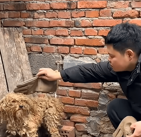 At first, the little dog resisted. His body tense, his voice sharp, unsure of what would happen next.