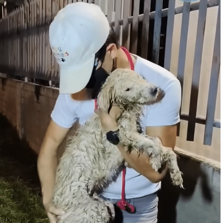 The dog’s body was still damp and covered in dirt.