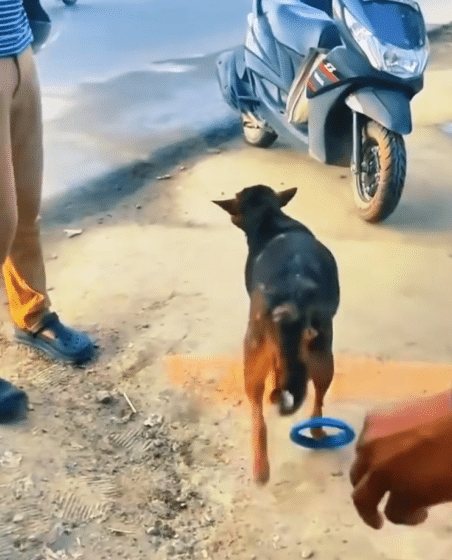 The dog resisted at first, moving unpredictably, unable to understand what was happening.