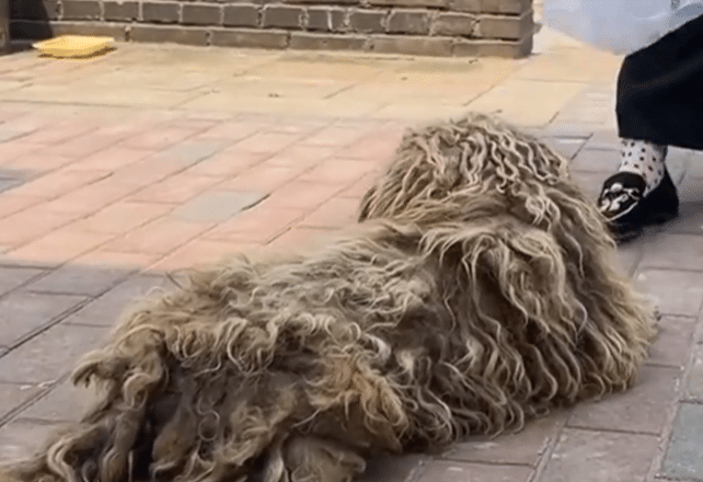 His long fur was tangled and matted into heavy clumps, giving him a rough, neglected appearance. But there was something gentle about him—something calm, almost thoughtful.