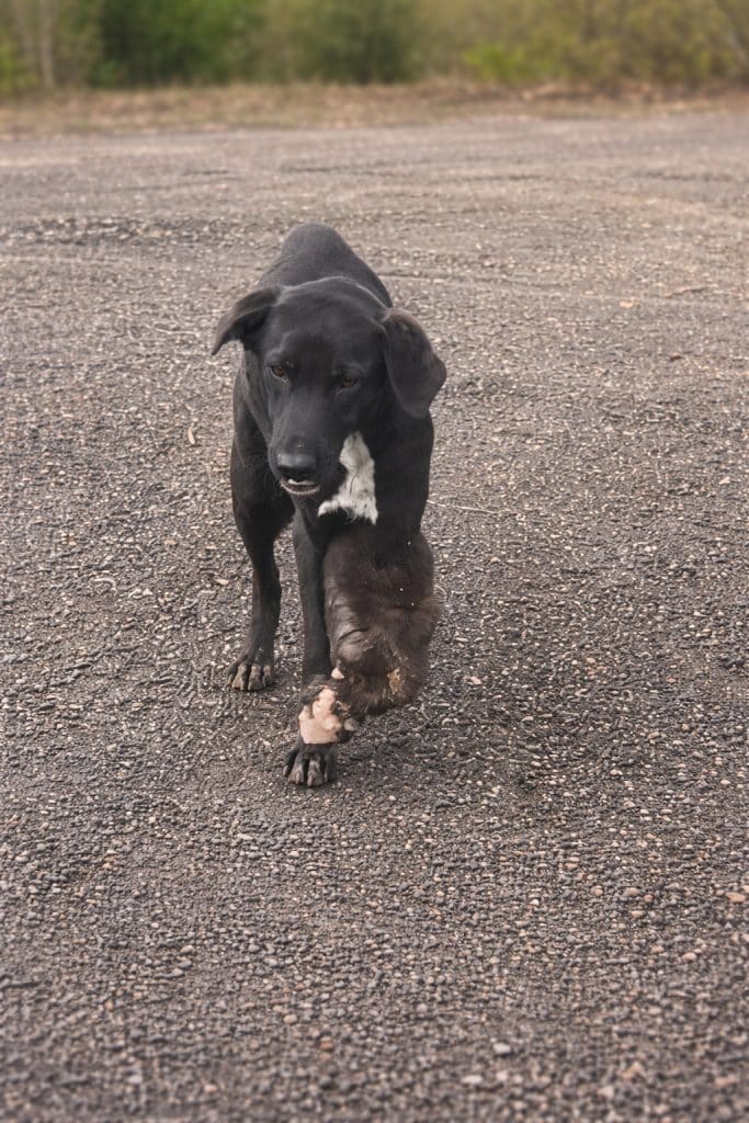It was swollen, misshapen, and hung at an unnatural angle, making it impossible for him to place any weight on it. His body looked thin, worn down by pain and exhaustion.