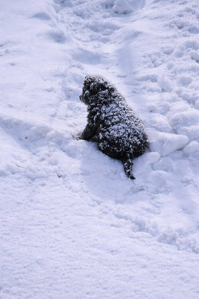 On a freezing day in Angarsk, Russia, a small black puppy was left alone in the snow.