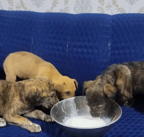 The puppies grew stronger, their eyes bright and curious. They began exploring, learning to drink from a bowl, discovering the world around them.