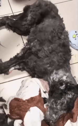 Video: A dog covered in hardened glue is gently freed and slowly learns to trust again