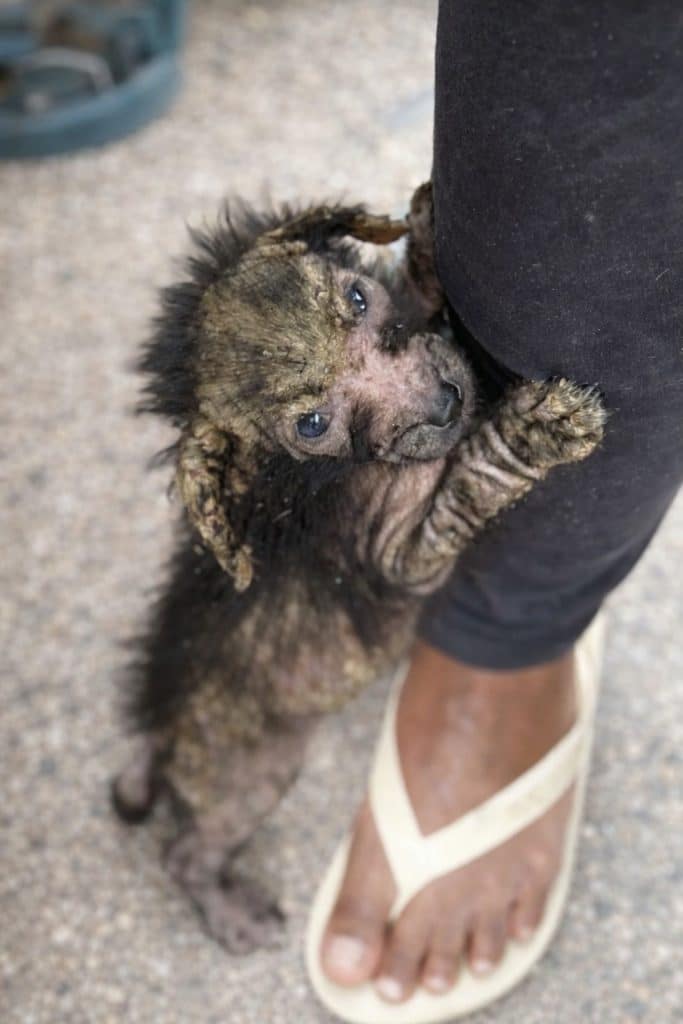 The small group of puppies and their mother were huddled together, barely moving. Their bodies were fragile, their skin rough and irritated, with patches where fur should have been. It was clear they had gone far too long without proper care.
