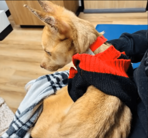 Penelope was wrapped in tiny sweaters to help her stay warm. Without enough body fat, even the air around her felt too cold.