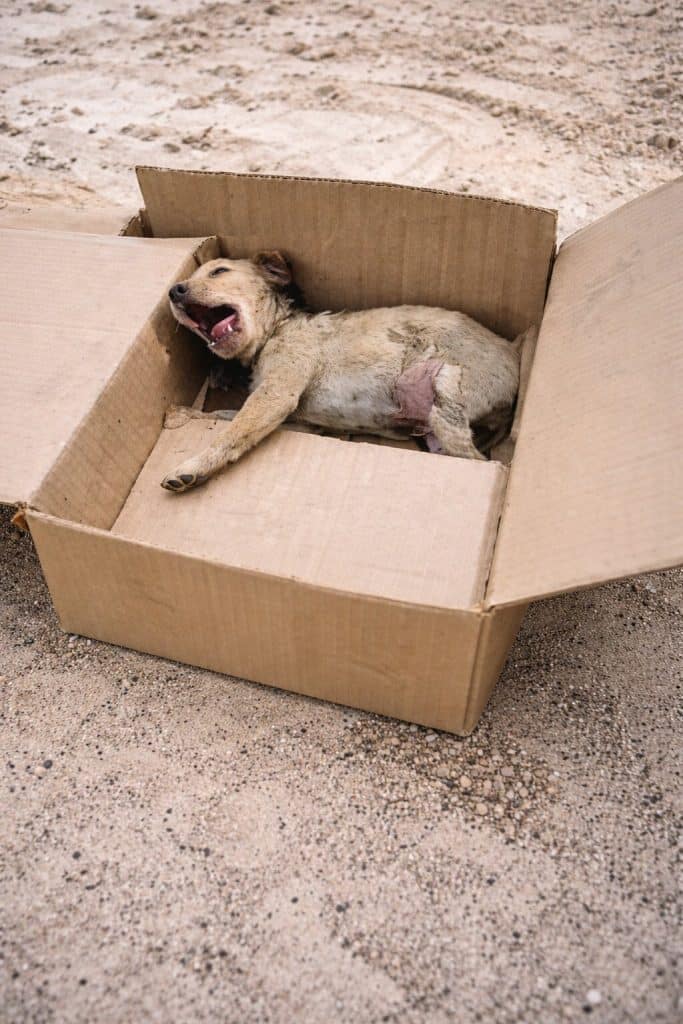 Today, Lucky is almost unrecognizable from the puppy once left in a box.