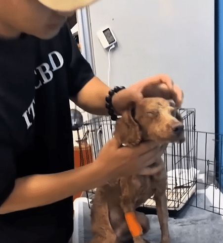 Without hesitation, he reached down and gently lifted the tiny dog from the container. There was no struggle, no resistance.