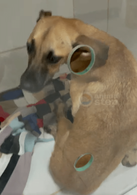 The dog remained under close care, surrounded by people who refused to give up on him.