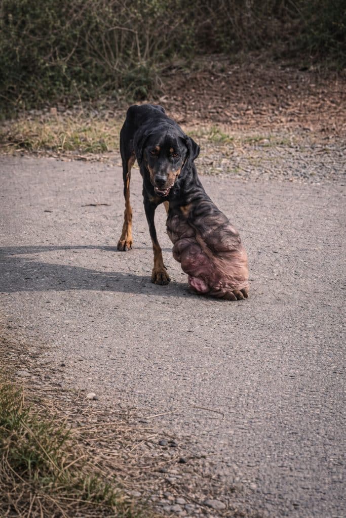 His paw was swollen, painfully enlarged, making every step a challenge.