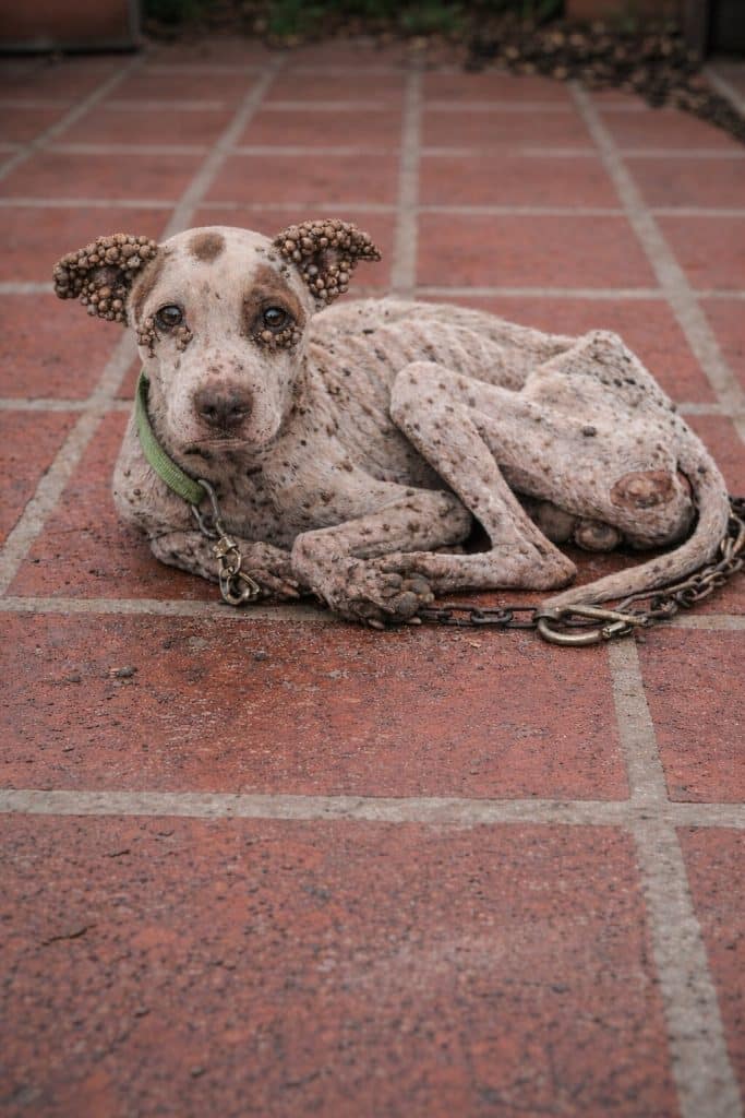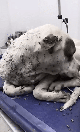 His body was painfully thin—little more than bone beneath fragile skin. And across his ears, his neck, and every fold of his body, countless parasites clung to him, slowly draining what little strength he had left.
