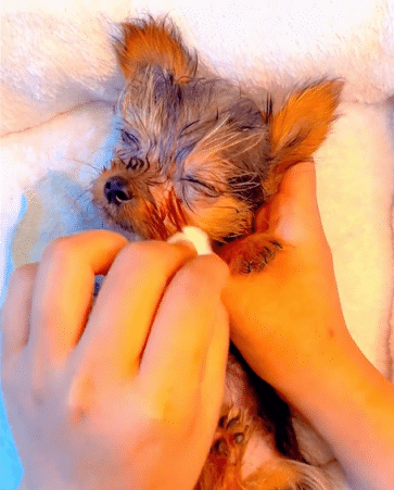 Gently placing the fragile little dog into a cardboard box, she rushed him to the nearest veterinary clinic.