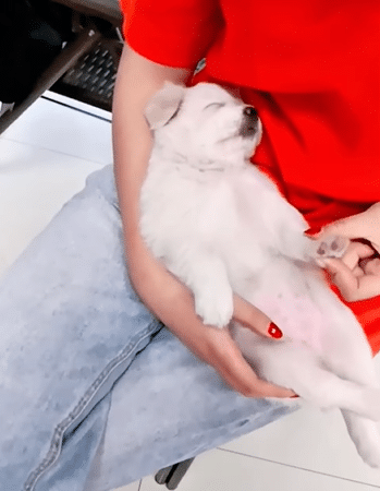 The mother dog was gentle—affectionate in ways that felt almost surprising. She rolled onto her back for belly rubs, leaned into every touch, and stayed close to the people who had welcomed her in.