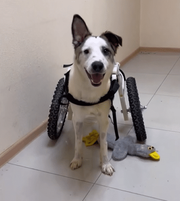 The tired look in his eyes began to fade, replaced by something lighter — something hopeful. He played. He engaged. He discovered that even without the use of his back legs, he could still experience happiness in ways that mattered.