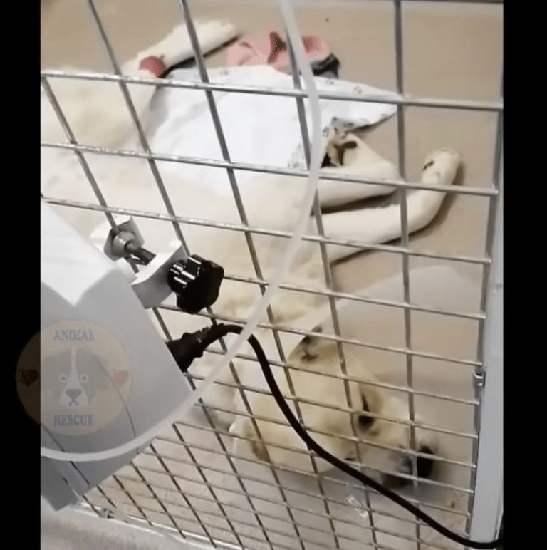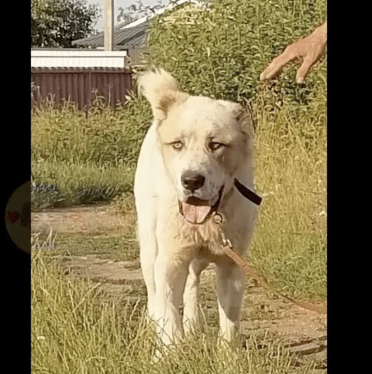 On a quiet stretch of road, far removed from warmth, noise, and human presence, a large white dog lay motionless against the cold ground. From a distance, he appeared lifeless, his body stretched out as if he had already surrendered to whatever fate awaited him. A thick rope was wound tightly around his neck, its rough fibers pressing into skin that had clearly endured far too much. Anyone passing by might have assumed it was already too late.