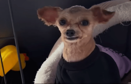 The dog was brought home, wrapped in warmth, given clean clothes, a soft place to rest, and the kind of attention he had likely never known. At first, everything was unfamiliar. The space. The sounds. Even his own reflection seemed to confuse him.