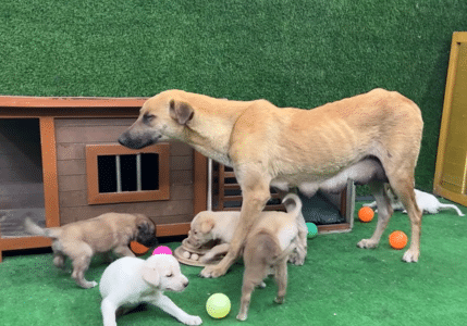 It continued in a place where kindness arrived just in time. Where a mother, pushed beyond her limits, was given the chance to rest. Where her puppies no longer had to search for survival on their own.