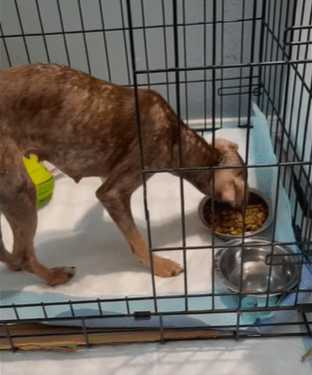 But when food was offered, something inside her responded immediately. Hunger overcame fear. Step by step, she walked into the crate.