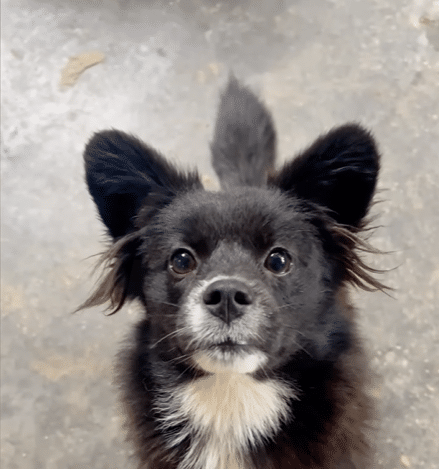 A tiny puppy, black and white, lay soaked and trembling.