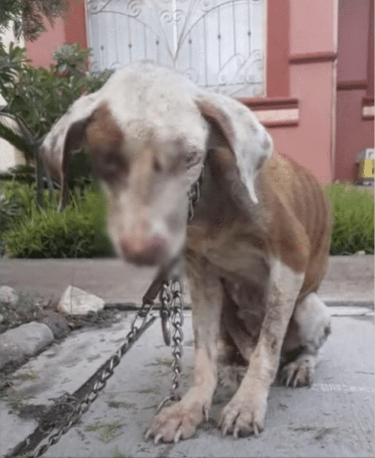 The physical toll of that neglect showed itself slowly. Her once-healthy frame grew alarmingly thin. Each rib became visible. Her muscles weakened, and standing required effort she no longer had. Small sores developed where the chain rubbed against her skin day after day. Even so, Zelda never lost her quiet habit of looking up when footsteps approached. Somewhere deep inside, hope remained.