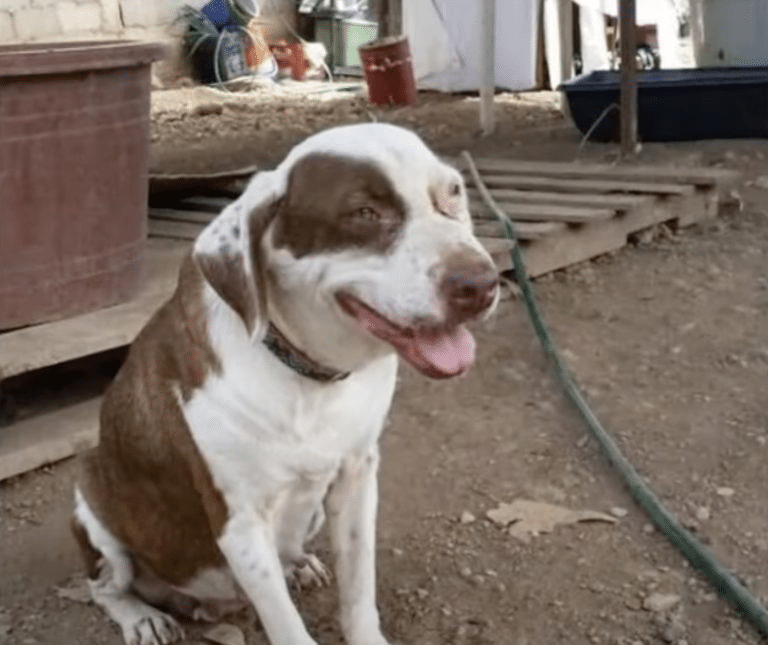 Zelda’s story does not begin with kindness or comfort. It begins quietly, in isolation, where time passed without meaning and days blended into seasons of neglect. She lived at the far edge of someone else’s life, tethered to the end of a heavy chain, exposed to the elements and forgotten once her usefulness was gone. There were no gentle words, no steady routines, no sense of belonging—only survival.