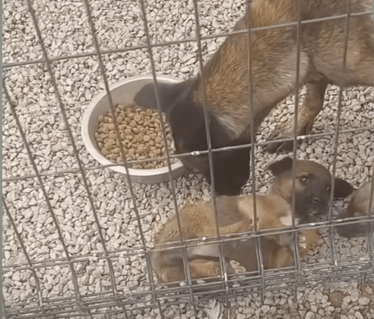 Sierra and her puppies were transported to the shelter, leaving behind the uncertainty of the roadside. The puppies were examined first. Despite the difficult conditions they had endured, they were in relatively stable shape. Sierra, however, needed immediate attention. Prolonged hunger had weakened her to the point that her body struggled to keep up with the demands of nursing.