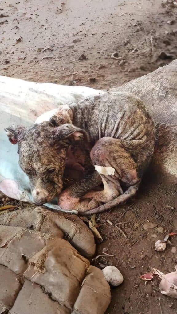 At the clinic, the reality of PETRA’s condition became clear. She was suffering from severe mange, a painful condition that had left her skin inflamed and raw. Large patches of fur were missing, replaced by dry, irritated skin that showed how long she had gone without help. Malnutrition had stunted her growth, leaving her underdeveloped and fragile. Yet even then, beneath the damage and discomfort, there was something unmistakable—PETRA was still fighting.