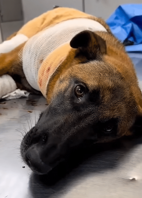 When the team finally reached her, the situation was grim. Layka’s injuries were severe, and saving her life became the immediate priority. She was evacuated for emergency medical care, where veterinary surgeons worked through a complex, hours-long operation. Layka survived, but the damage was extensive. One of her legs could not be saved. The loss was permanent, but survival mattered more than anything else.