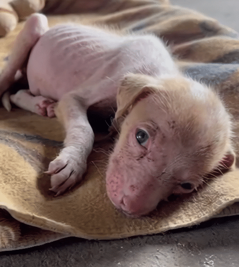When rescuers first discovered him, it was almost impossible to believe he was still alive. The tiny puppy lay completely still, his frail chest rising and falling so slowly that each breath felt uncertain. His body told a painful story of prolonged hunger, neglect, and isolation. To many, he looked like a life already fading. But to the woman who knelt beside him that day, surrender was never an option.