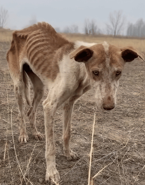 Nora’s body was painfully thin. Her ribs pressed sharply against her skin, each step revealing how little strength she had left. Hunger, dehydration, and illness had stripped her down to a fragile frame barely holding itself together. Walking was no longer natural movement for her—it was effort, concentration, and will combined. She wasn’t looking for comfort or companionship. She was searching for food. For relief. For one more chance to survive.