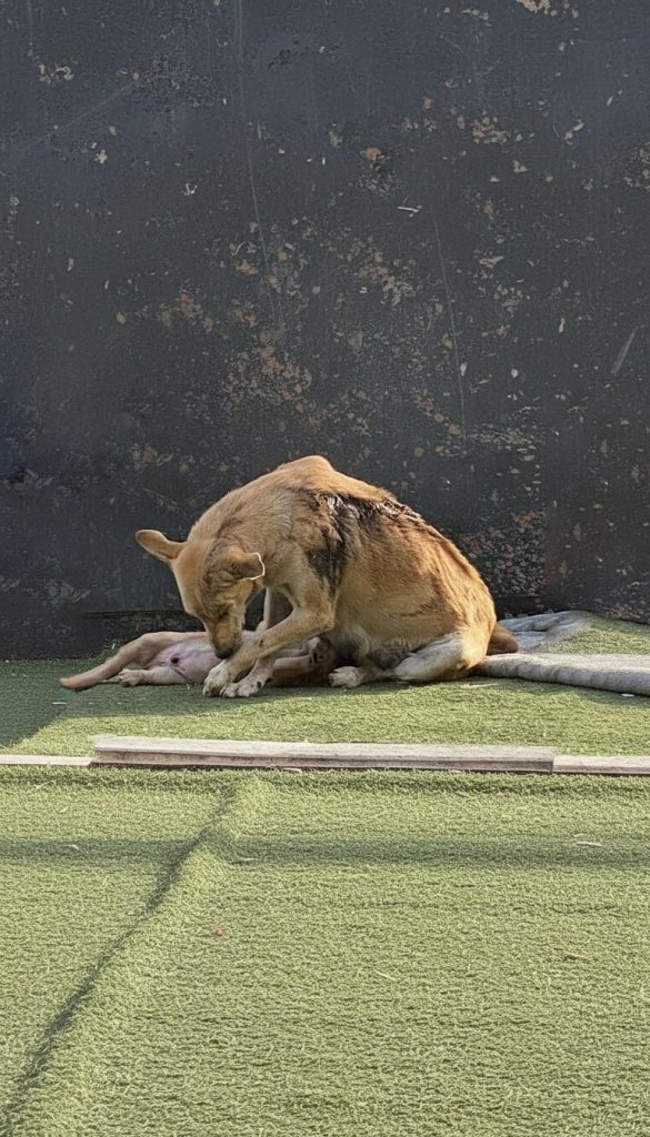 When the store owner noticed the dog and her litter, compassion was not the response that followed. Sensing danger immediately, the mother dog reacted without hesitation. There was no time to think, no room for fear. She placed herself directly between the threat and her puppies, driven by a force stronger than pain or instinct alone.