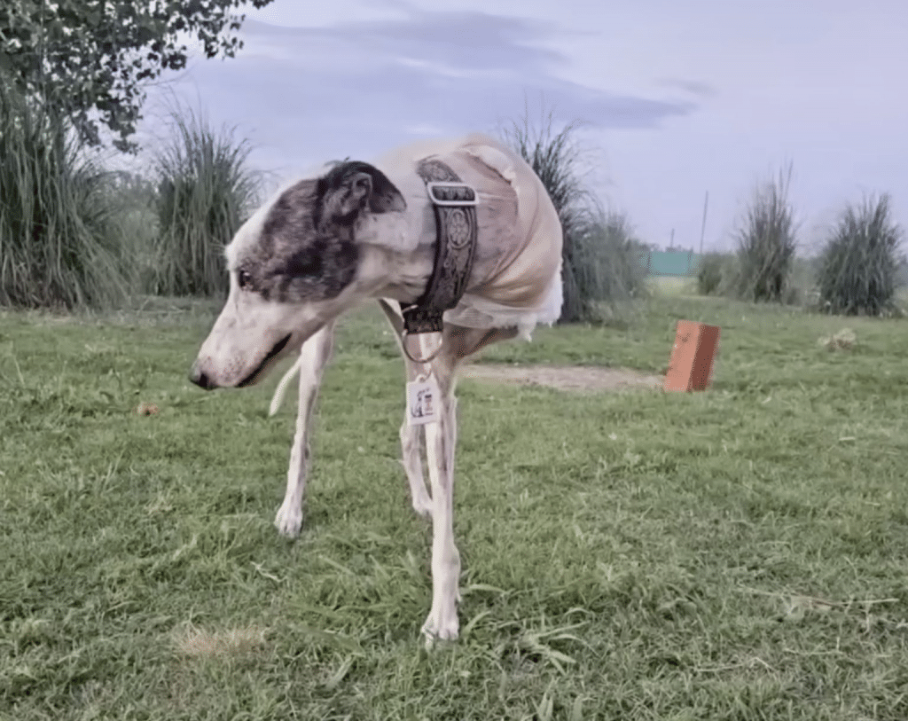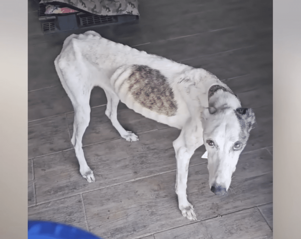 Her long, slender body showed the weight of too many lonely days. Her coat had lost its shine. Her breathing was shallow. Her eyes held a quiet resignation, as if she had already accepted that help would never come.