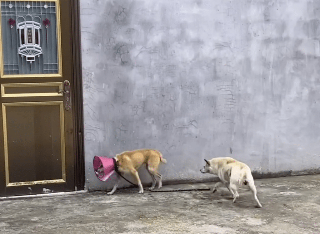 She remained at the clinic for two weeks. Each day brought small but visible changes. Her appetite returned. Her eyes brightened. Even with a protective cone around her neck, she moved more freely — lighter than before.