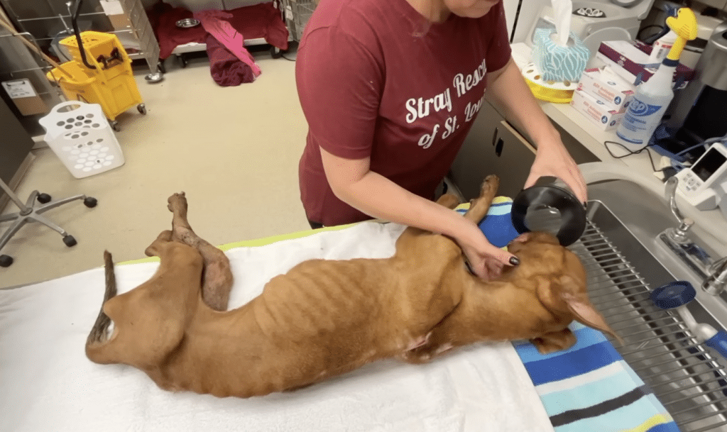 Warm fluids were given slowly. Gentle hands cleaned her fur and tended to old wounds. Food was offered carefully, in small amounts. Every sound in the room was softened. Every movement was intentional.