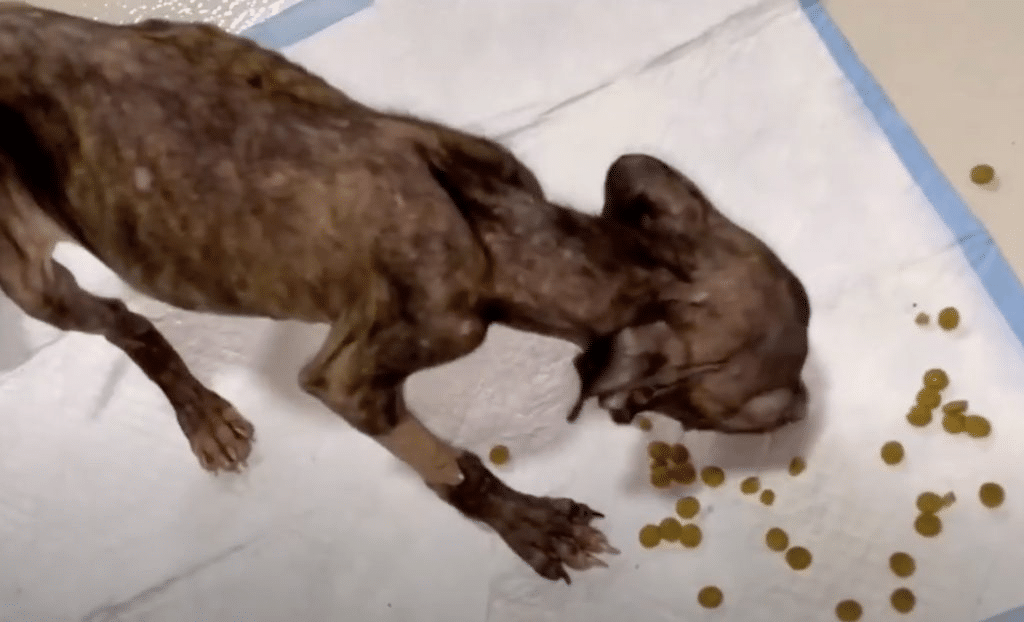 When help arrived, Gorgojita was in fragile condition. Prolonged exposure had taken a toll on her small body. She was dangerously underweight, her skin thin and sensitive, with patches where fur had yet to grow. Even lifting her head seemed exhausting. Her shallow breaths told the story of a puppy who had been fighting silently just to stay alive. Anyone who looked at her could see how close she was to giving up—yet there was a faint spark that refused to fade.