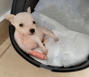 About a week into her recovery, another milestone arrived. Amor began eating on her own. At first, it was only a few bites of canned puppy food, but even that felt like a victory. Her appetite, once nonexistent, started to grow. To support her recovery, she received water and malt extract rich in iron every two hours, helping rebuild what her body had lost.