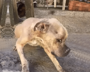 When rescuers finally learned about him, they expected fear or resistance. Instead, they found a dog who barely had the strength to stand but still carried a gentle, trusting spirit. His eyes, tired and heavy, held no anger—only exhaustion and a faint hope that someone had finally come for him.